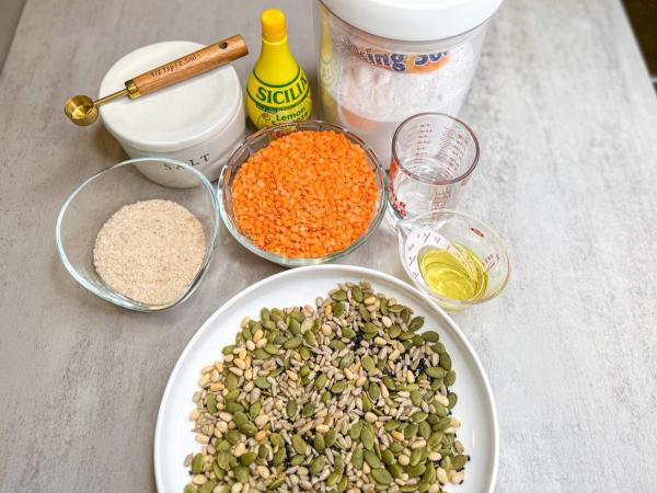 - Rinse the soaked lentils and transfer them to a vitamix blender or an immersion blender bowl. Add the remaining ingredients — psyllium, water, oil, baking soda, juice or vinegar, and salt—and blend until smooth