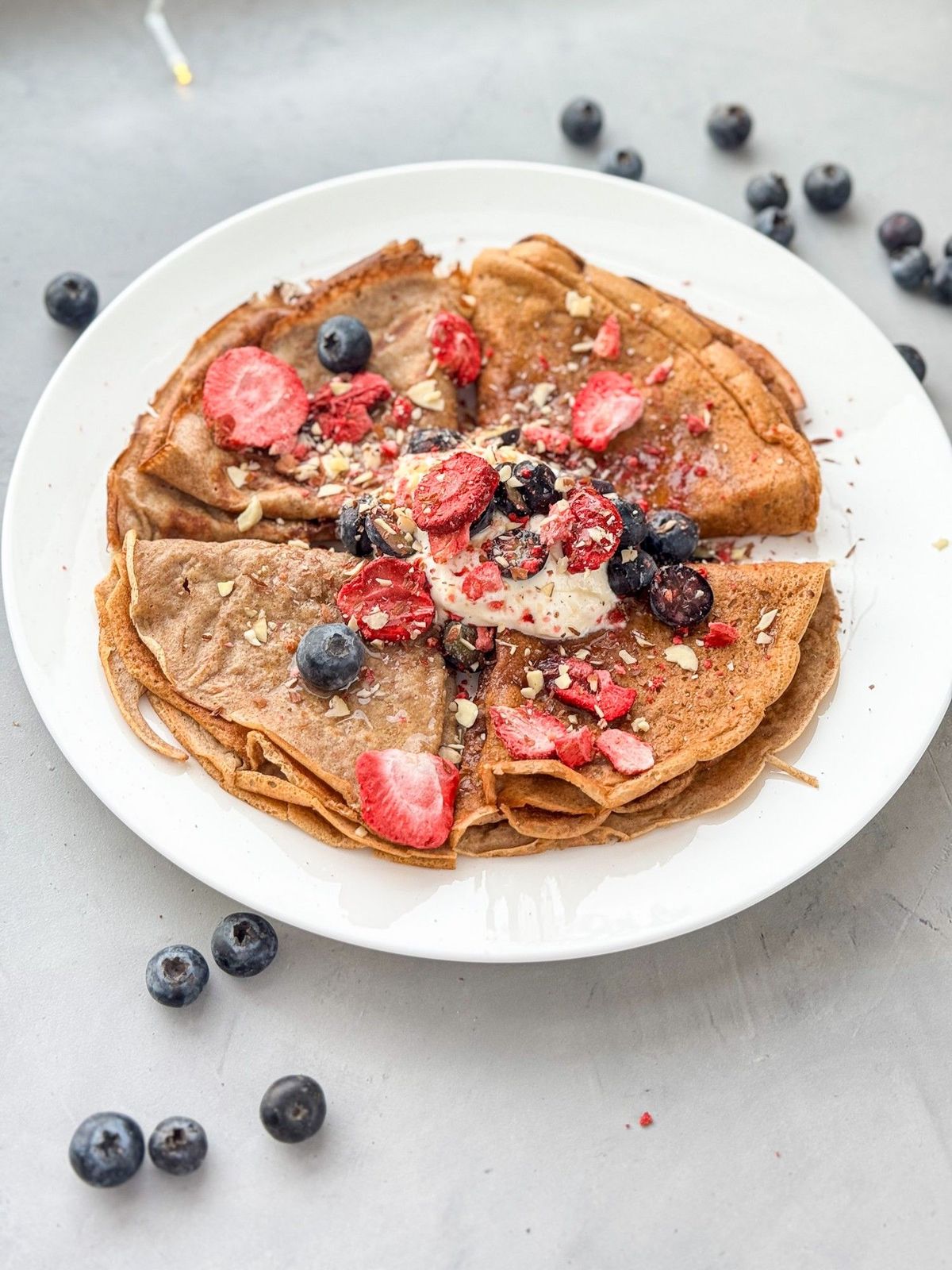 These pancakes taste best right after cooking, served with sour cream, yogurt, or jam, and berries!