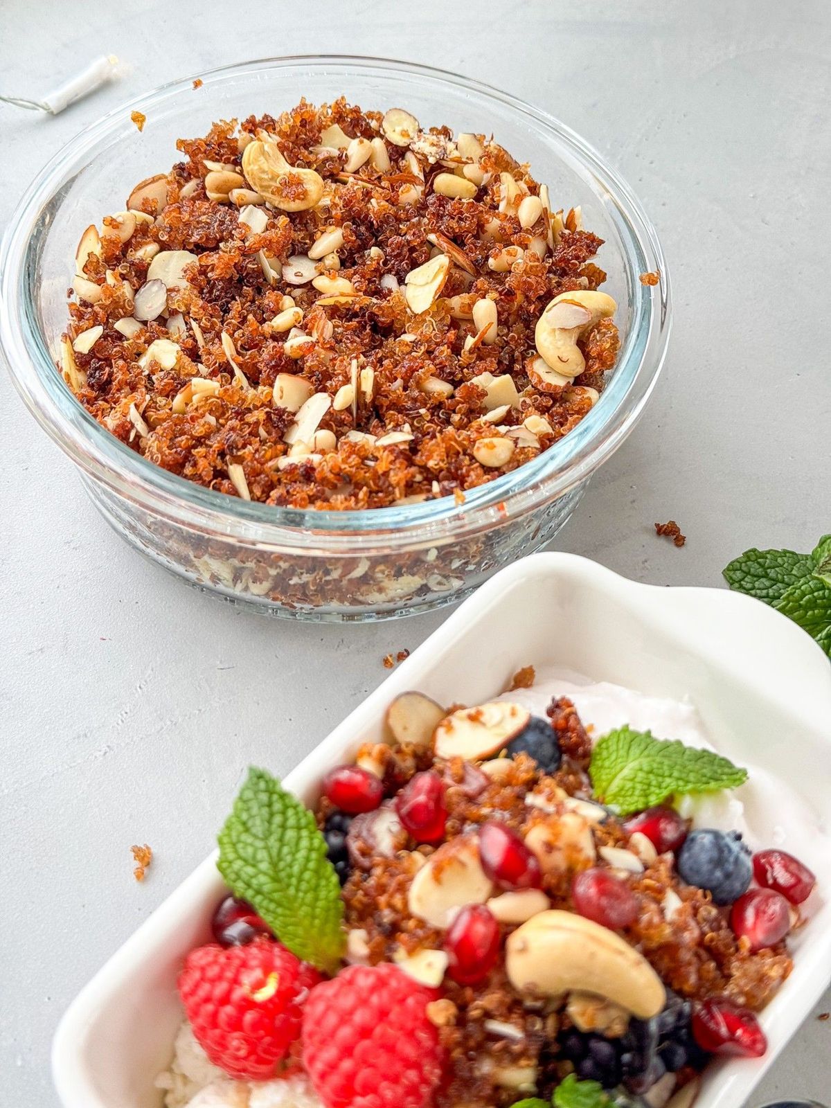 Anyone interested in breakfast ideas has probably heard of one particular option a thousand times—granola! At this point, it’s hardly surprising anymore, given the countless variations, flavors, and recipes. But kinoLa is something fresh, still gaining popularity, and it's a fantastic way to add variety and excitement to your breakfasts—and your diet in general. Moreover, it's a perfect way to incorporate quinoa into your diet if you haven't been particularly fond of this grain before. Do you agree? Then open this recipe, try it, and let me know what you think!