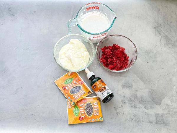 - It's super simple! Just add the raspberries, yogurt, coconut milk, and sweetener to a blender, one by one, and blend until smooth