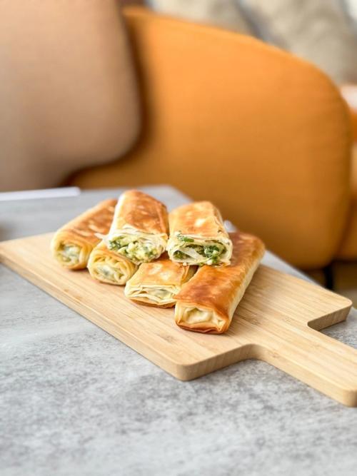 - Lay out the sheets of phyllo dough and evenly spread the filling on each one. Roll them up tightly, one by one. To seal the edges, lightly brush them with water to prevent the rolls from unraveling