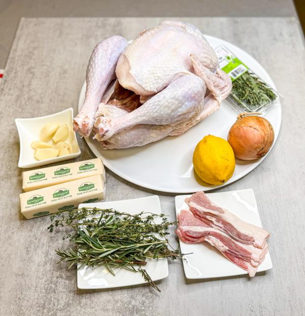 If you prefer not to cook with bacon, simply omit it from the recipe. If the skin starts to brown too much before the turkey is fully cooked, cover it loosely with foil to prevent over-browning while allowing the meat to finish roasting.