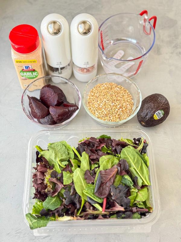 - Бажано заздалегідь і одночасно підготувати головні інгредієнти для основи: поставити запікатись буряк і, в цей же час, зайти гречку водою.
