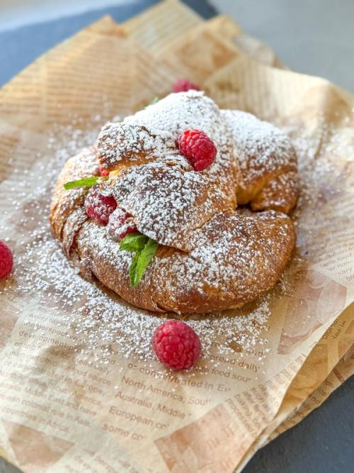- Готовий круасан переклади на посудину, додай улюблені ягоди, присип цукровою пудрою та додай декілька листочків мʼяти. Готово!