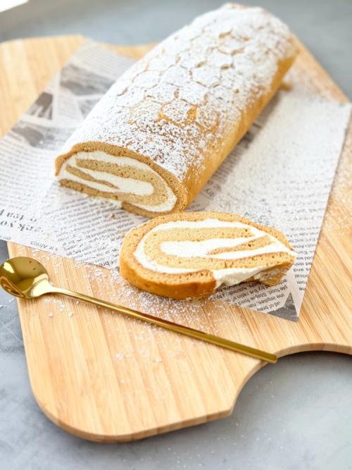 - Далі, акуратно, за допомогою пергаменту скручуй все в рулет. В кінці, загорни все в харчову плівку/пергамент і залиш стабілізуватись у холодильнику принаймні декілька годин. Згодом, підріж краї ролу, наріж шматочками сам рулет та подавай до смачного напою!