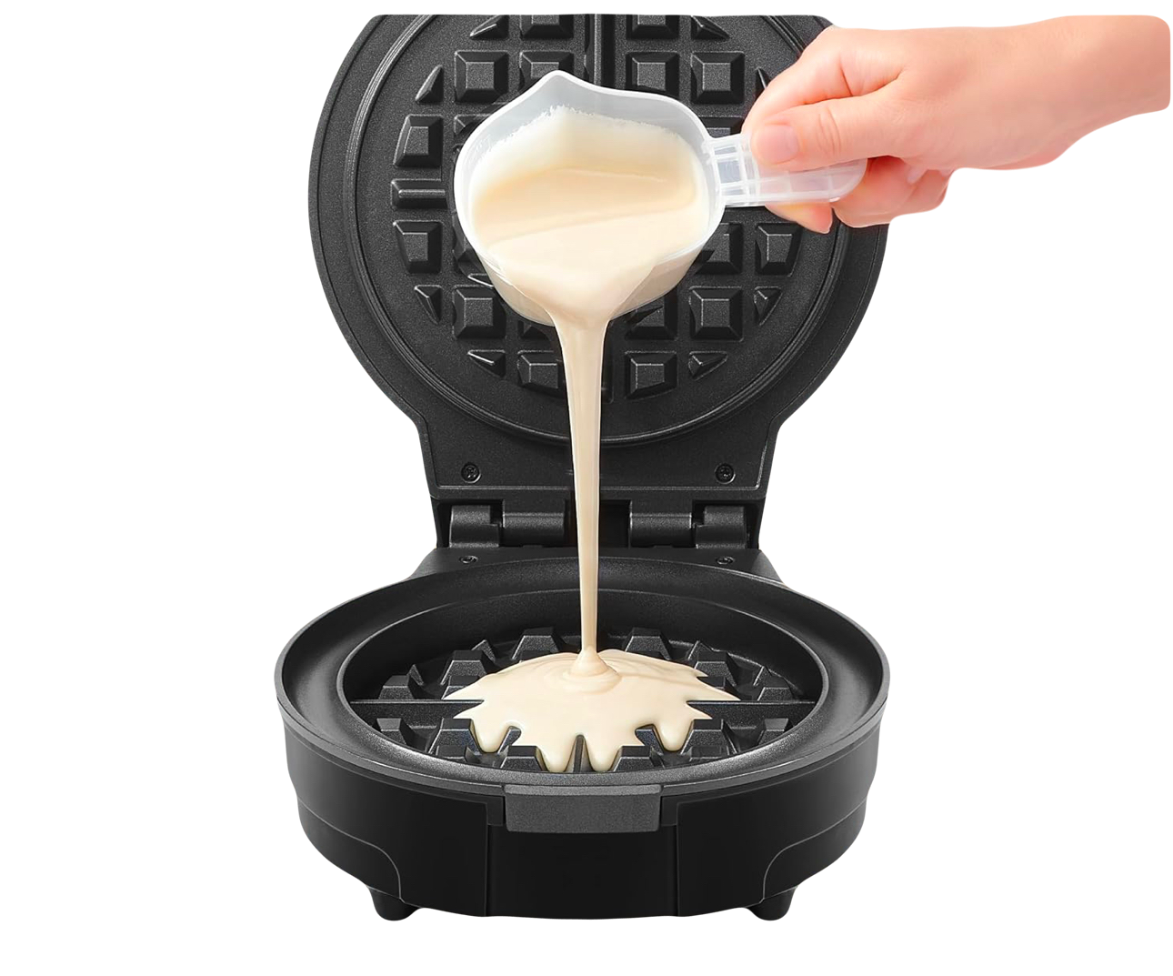 - Порційно, на розігріту вафельницю, виливай тісто та готуй 3-4 хв до готовності вафель (в залежності від пристрою)